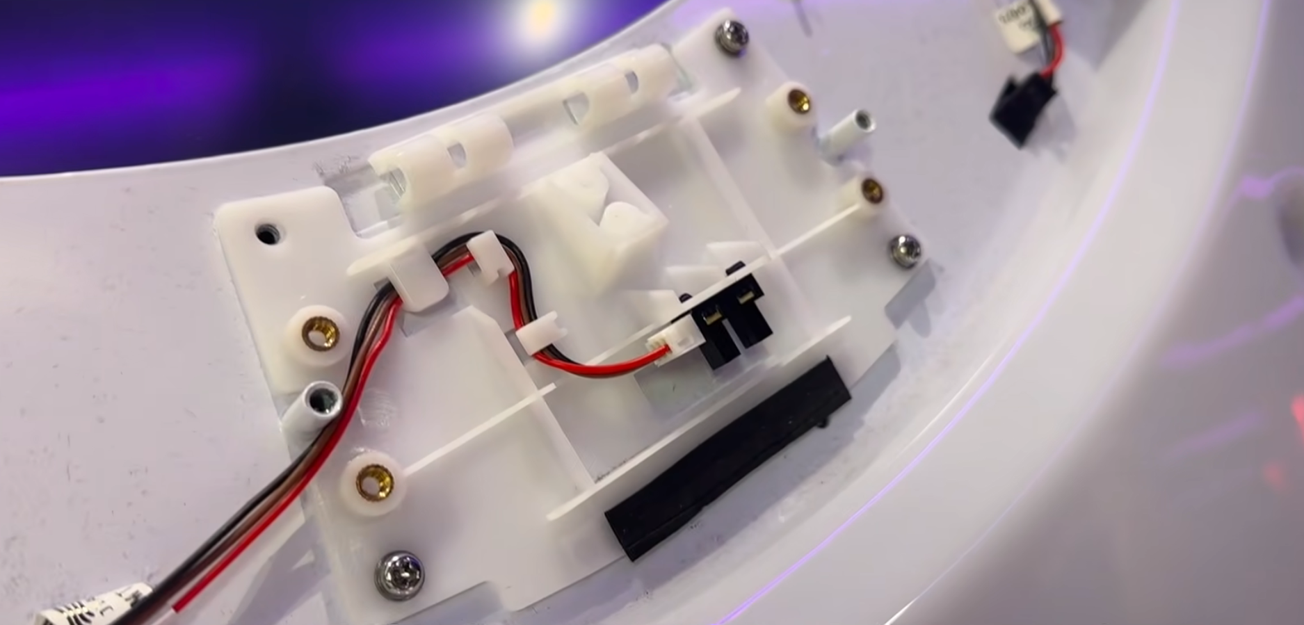 舞萌的按键实际上是一个光电开关,按下按键后压缩弹片,弹片就会遮住红外传感器,完成触发。这样的优点是寿命长,响应速度快,价格低廉。其实不止舞萌是这样设计的,大多数街机类音游都采用这个方案设计
