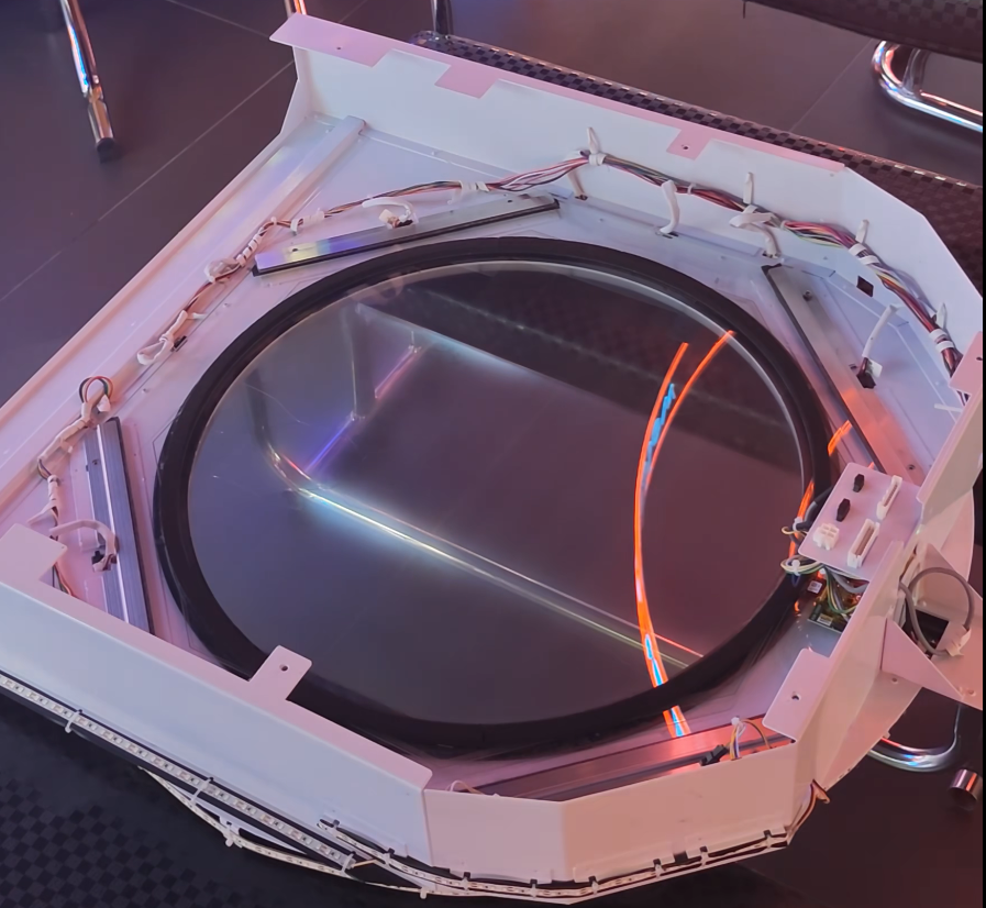 整个触摸面板是双层玻璃,据我所知触摸层是5mm厚的稀土玻璃内层为3mm的超白钢化中间是中空的并且是密封的,应该是为了保护电路避免长时间接触空气导致氧化